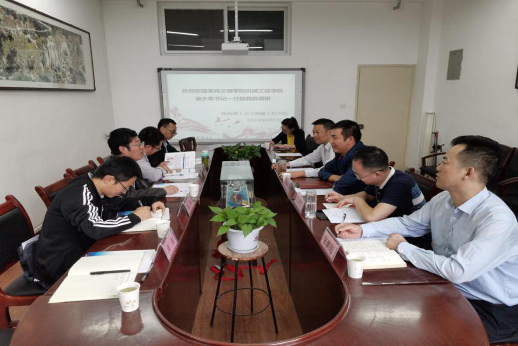 为了推进陕西省机器人关键零部件先进制造与评估省市共建重点实验室的建设工作,9月26日至9月28日,必发集团welcome分党委书记秦少军、重点实验室专职副主任李亮等一行五人组成调研小组,前往陕西理工大学和安康学院,就省重点实验室科研团队建设、运行管理以及评估等工作进行调研。