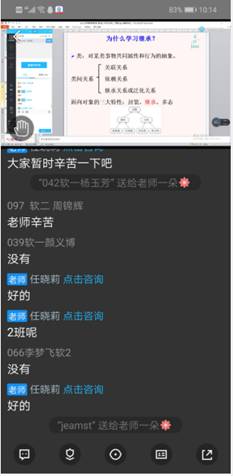 由于学生在手机端听课,没有课本等相关资料,所以网络授课过程中,语速还是慢些,学生能听得更清楚,也有思考记忆的时间。