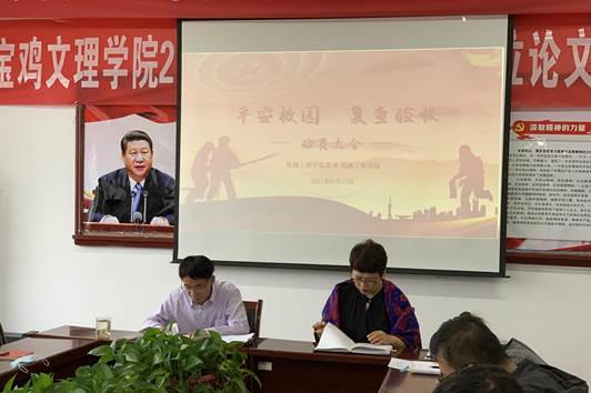 会上,李建峰首先传达了学校省级“平安校园”复审工作动员大会会议精神,并根据《欢迎光临必发集团开展省级“平安校园”复审工作实施方案》文件,部署了学院开展“创建平安校园”相关工作。一是成立学院“平安校园”复审工作领导小组,制定《必发集团welcome开展省级“平安校园”复审工作实施方案》;二是明确了学院“平安校园”复审工作责任人工作重点,目标措施及要求;三是进一步完善各项安全制度,结合学院具体工作,分析学院安全形势,全面排查各类安全隐患,签订安全承诺书,夯实安全责任,落实好常态化疫情防控工作;四是在中秋节前,各实验室负责人,班主任,辅导员学生干部要深入实验室,学生宿舍进行安全检查,密切关注各类特殊群体。组织开展小型,分散的校园文化活动,丰富学生的假期生活,确保全院师生过一个温馨,安全的中秋佳节。