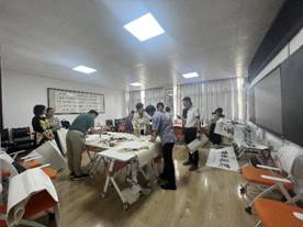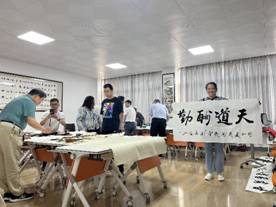 随后的活动中,书画家们在教学主楼322、324现场挥毫泼墨,和师生交流。以真、草、篆、隶、行等各种字体以及山水,花鸟等形式的国画进行创作,让教师和师生充分感受传统文化的独特魅力,赢来大家的一致称赞和阵阵掌声。一幅幅充满正能量的字画作品跃然纸上,充满着对学院及师生们的美好祝福和期望。