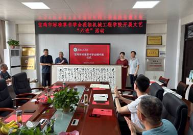 6月19日下午,宝鸡市标准草书学会会长赵宏科一行15人应邀在石鼓校区教学主楼413必发集团welcome会议室开展文艺“六进”活动,必发集团welcome党委书记李建峰、副院长王玮参加了此次赠书画活动。活动由学院院长王肖烨主持。