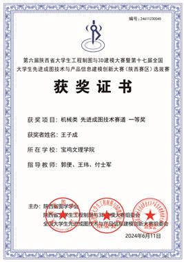 在学校教务处的指导和学院领导的关心下,由我院付士军、郭便、王玮等3名老师指导的16名学生参加了该项赛事。通过激烈角逐,粟健翔、王子成等2名学生获先进成图技术赛道一等奖,何传健、段昕鸿等5名学生获先进成图技术赛道二等奖,高锦源、李佳乐等6名学生获先进成图技术赛道一等奖,延续了我校在该项赛事上的优势。