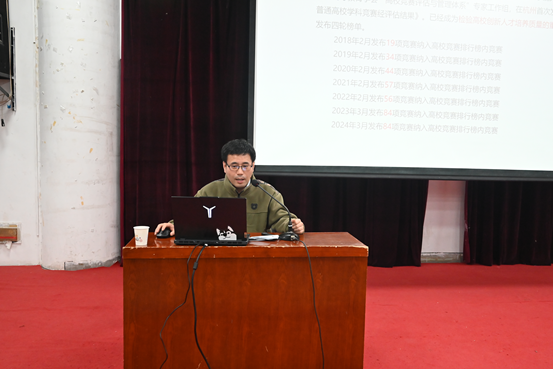 史鹏涛教授结合多年指导学科竞赛的丰富经验,从学科竞赛的重要性、竞赛种类、参赛注意事项及参与方法等方面,进行了深入浅出的讲解。他指出学科竞赛不仅能够提升学生的综合素质和专业知识,还为优秀学生的考研及职业发展提供了广阔的空间,通过参赛,学生能够强化逻辑思维,提升团队协作能力,并在实践中解决实际问题,从而显著增强就业竞争力,同时鼓励同学们积极参与竞赛,抓住实践机会,为未来的发展积累宝贵经验。