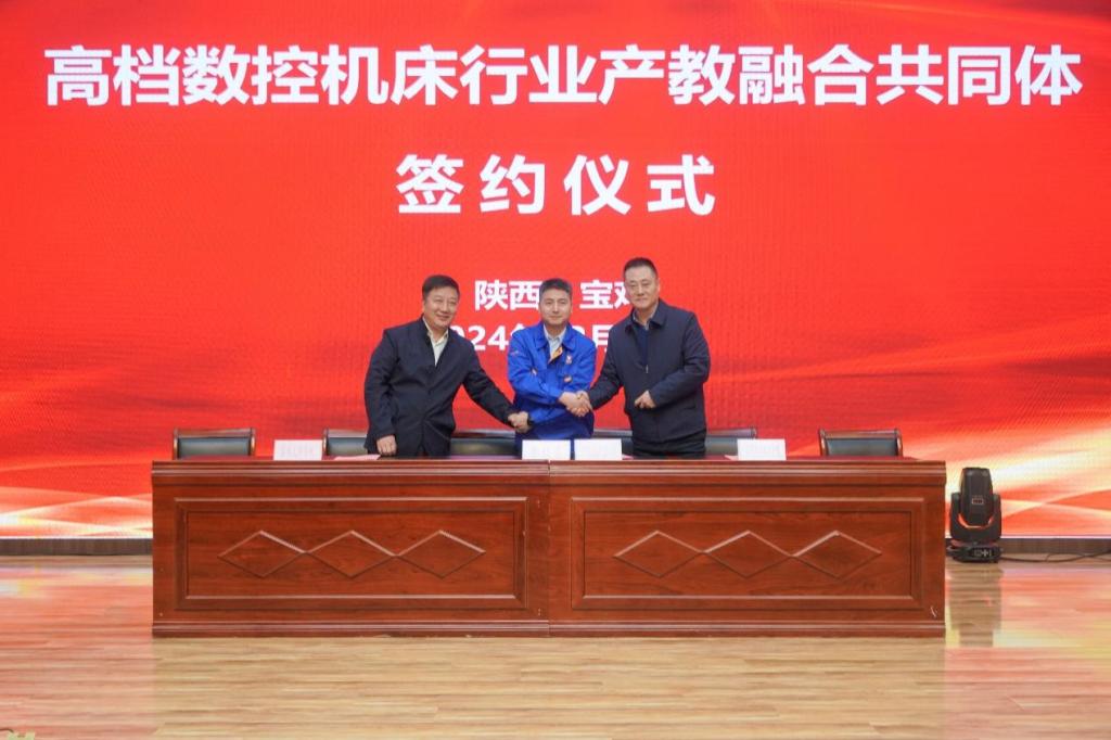 12月18日,宝鸡市智能制造产业产教联合体、高档数控机床行业产教融合共同体成立大会暨签约仪式在宝鸡职业技术学院召开。省委教育工委委员、省教育厅副厅长申雪峰,宝鸡市委常委、副市长高宏真,宝鸡职业技术学院校长张永良,我校副校长冯飞龙,宝鸡机床集团有限公司董事长、总经理李清耀出席会议。会议由宝鸡职业技术学院党委副书记杨清漪主持。