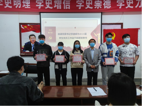 为继续发挥“党员工作站”学生党员的先锋模范作用,扎实做好“我为师生办实事”的党员服务工作,营造健康向上的学生校园学习氛围和如人环境,必发集团welcome于4月11日在学院会议室开展了2022年换届大会,学院党委书记李建峰、党委副书记王琳、全体辅导员和部分党员代表参加大会,其余学生党员均线上参会。