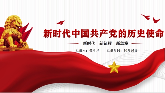学生第二党支部理论学习第四小组汇报人樊卓洋同志围绕“新时代中国共产党的历史使命”分享学习过程与成果。