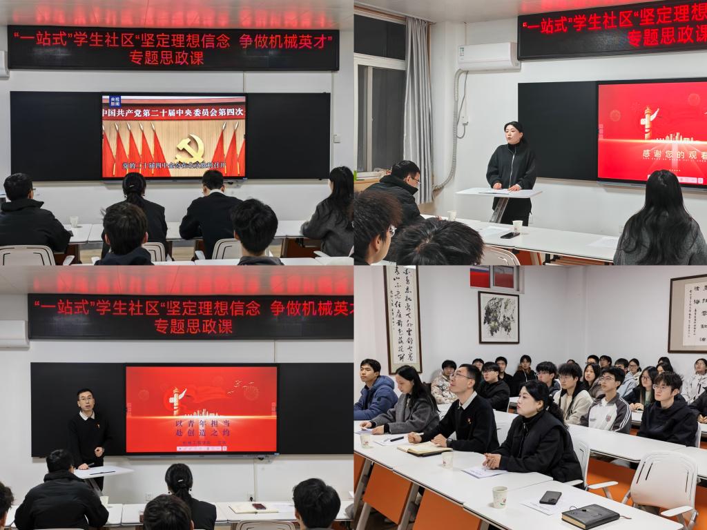 为深入学习贯彻党的二十届四中全会精神,将思政教育与专业培养深度融合,12月28日晚,必发集团welcome“一站式”学生社区在石鼓校区主教楼322室举办“坚定理想信念 争做机械英才”专题思政课。学院党委副书记席璇方、副院长王玮、团委书记封昭及2025年下半年新发展的党员、团员代表参加了活动。活动由学院辅导员许小莉主持。