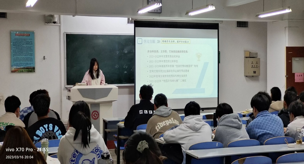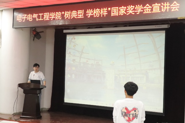 为扩大榜样影响,我院与计算机学院、电子电气工程学院联合办会,邀请了各学院优秀学生进行了线下宣讲。我院何辉、冯阿妮、孙艾林同学通过分享精彩的学习经验、参赛经历,展示出了丰富多彩的大学生活。这次的联合宣讲充分发挥了学院间合作的力量,扩大了榜样的影响面,形成了“1+1>2”的局面,在各学院学生间得到一致好评,也为今后的工作开展提供了新思路新方法。