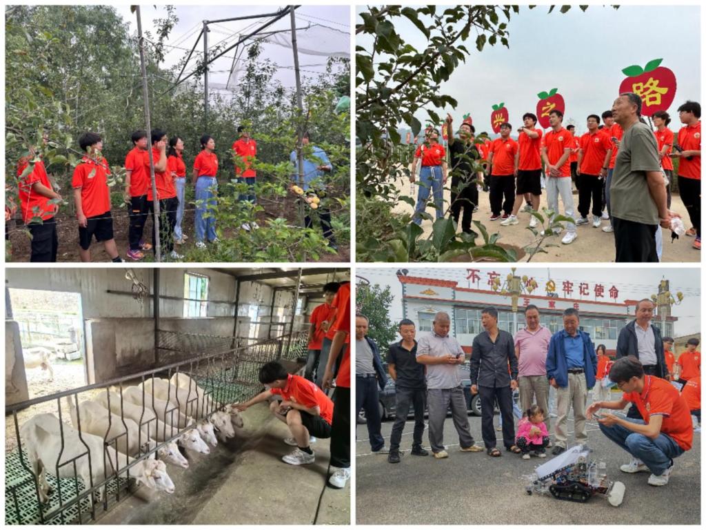 脚踏实地,乡村振兴探新径。“青禾硕果”实践团参观了当地“五色产业”中的“红色”苹果产业和“白色”奶山羊产业。成员们体验了苹果套袋工序,了解到目前套袋工作主要依靠人工,效率低且成本较高。面对这个实际困难,成员们和园区负责人探讨如何设计智能化套袋设备,各种专业名词和设计思路在交流中不断涌现。在张家山村奶山羊养殖基地,面对已成规模的村集体养殖产业,成员们开始思考如何实现智能化管理。通过实地体验和交流,成员们深刻认识到,乡村振兴离不开科技的支撑,学科知识只有与实际产业紧密结合,才能真正发挥价值。