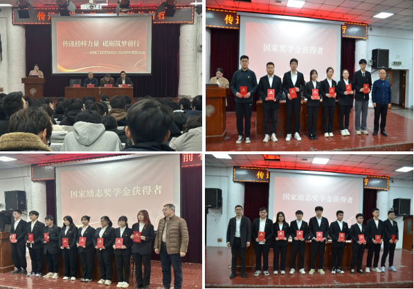 表彰大会在国歌声中拉开帷幕。席璇方宣读了《必发集团welcome2023-2024学年表彰决定》。学院党委书记鲁海涛,副院长高晓龙、王玮分别为7名国家奖学金和46名国家励志奖学金获得者颁发了荣誉证书。获奖研究生代表董圣泽,本科生代表陈伟旭、梁泓珺、苏展、苏芳郁五位同学分别上台发言,与大家一起分享获奖的喜悦,讲述自己求学之路和对未来人生的规划,鼓励全体同学怀揣梦想,在青春的赛道上奋力奔跑,用汗水书写人生的辉煌篇章。